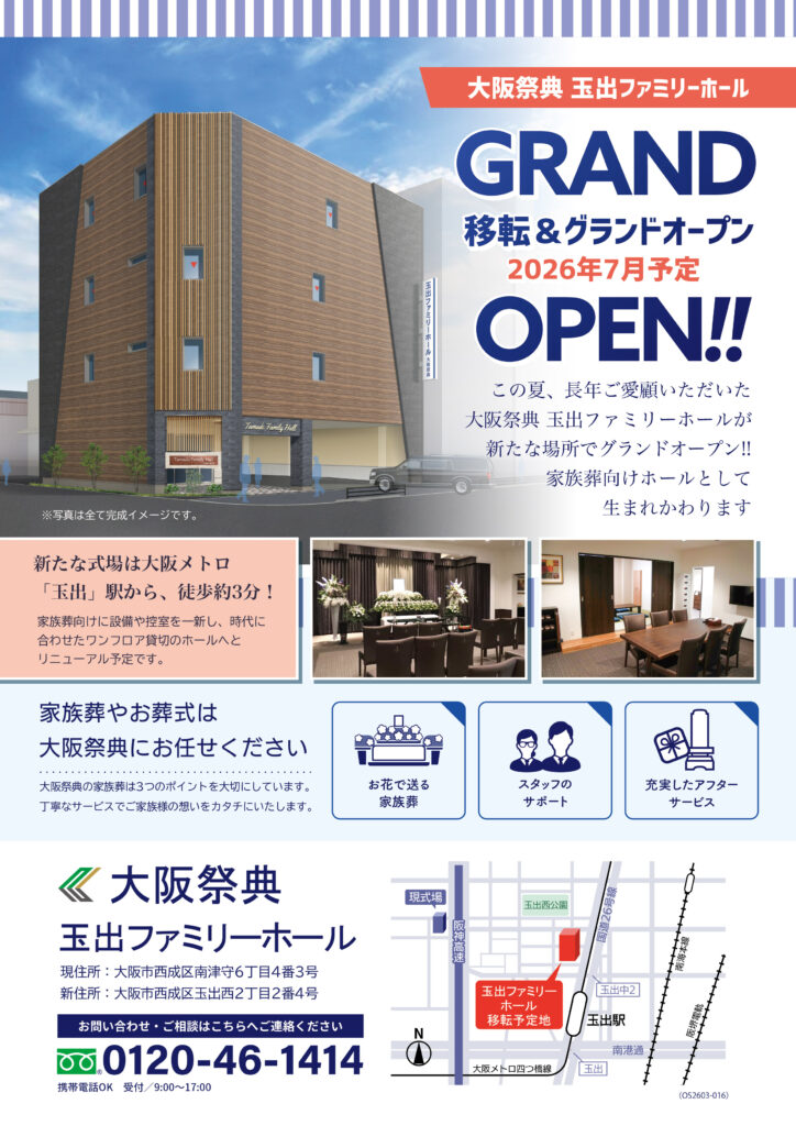 長年ご愛顧いただいた大阪祭典 玉出ファミリーホールが新たな場所でグランドオープン!!